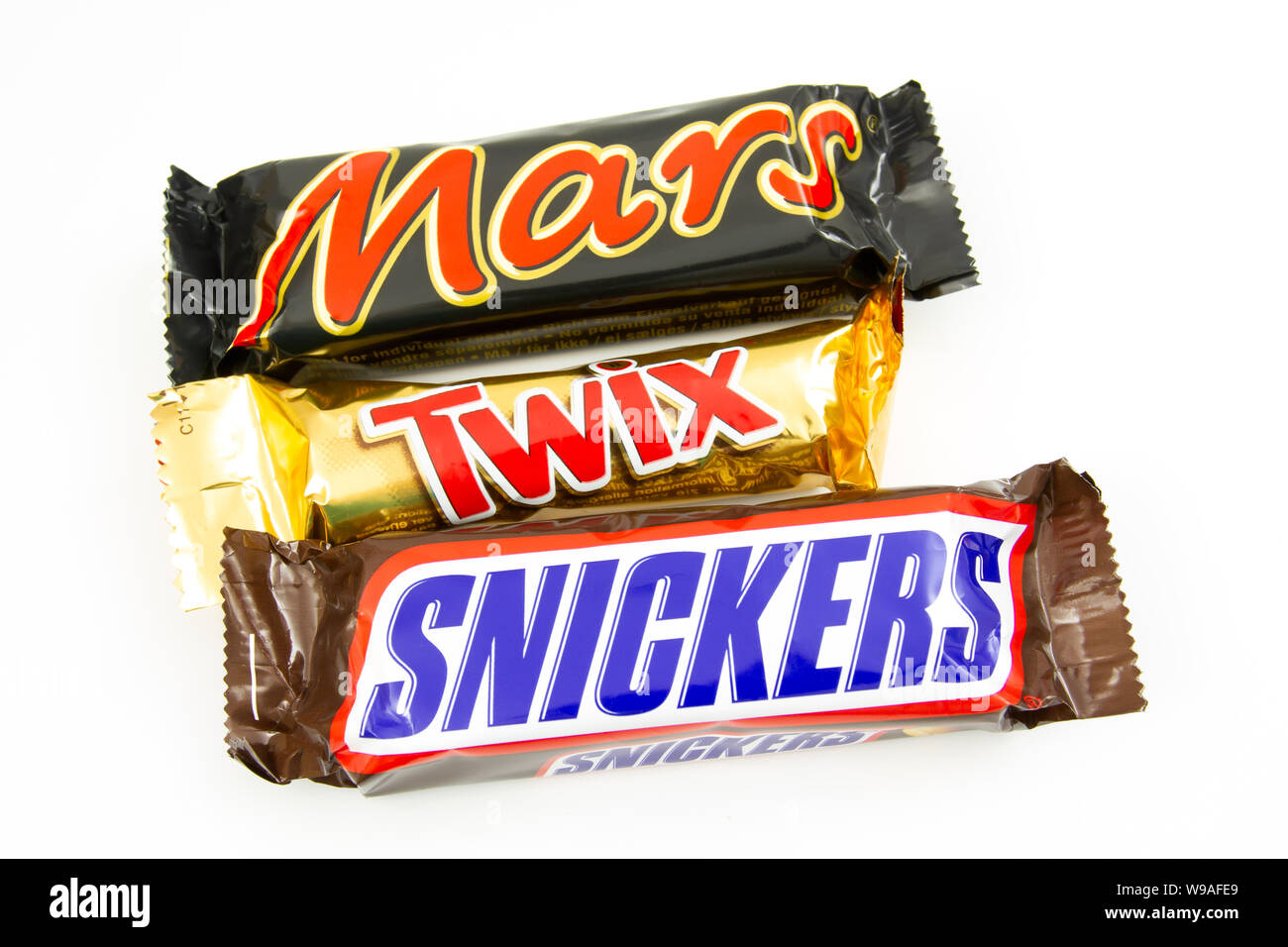 Chocolate Mars Twix Snickers Isolated On A White Background Stock Photo Alamy
